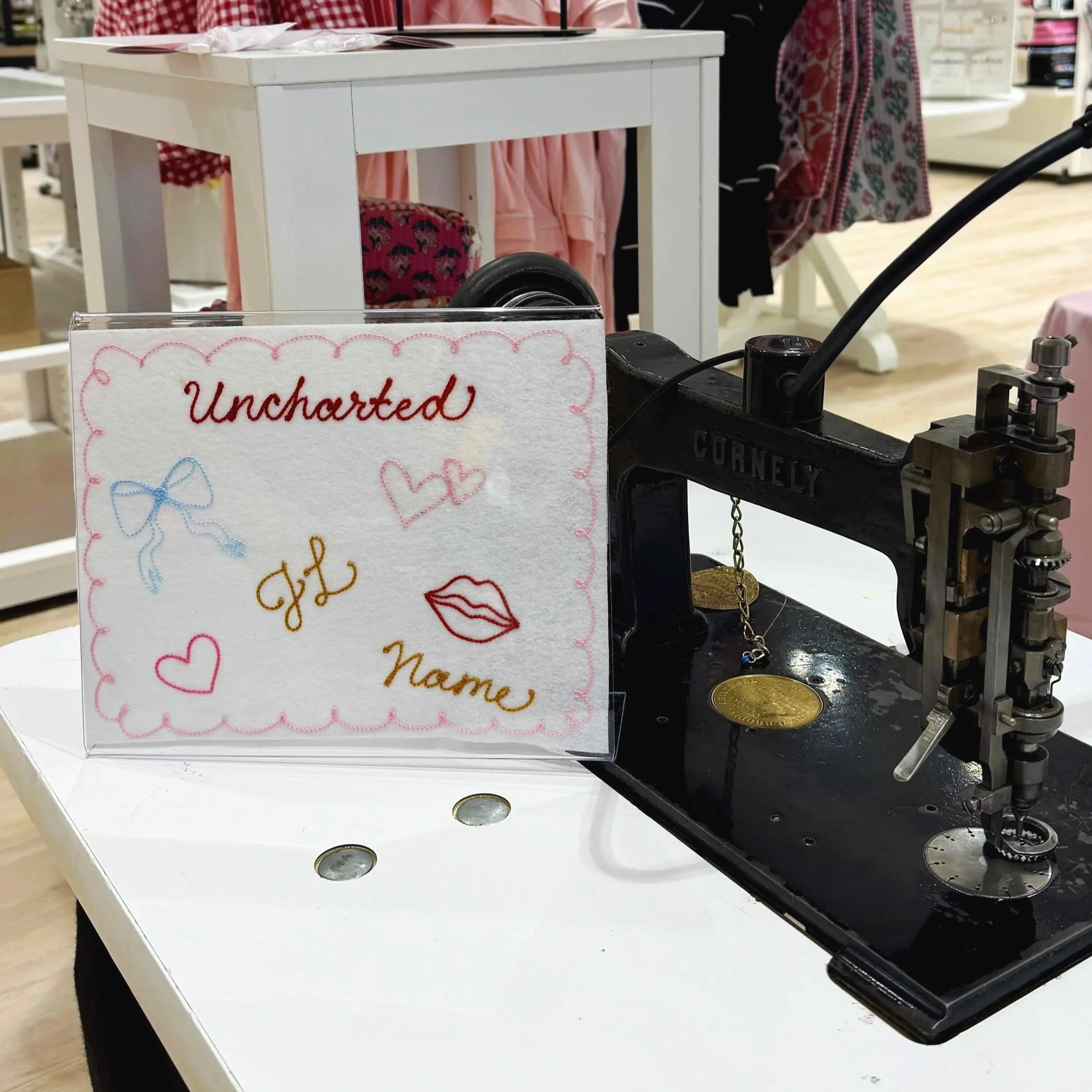 I’ve worked with many brands, stores, and venues including Anthropologie, Filson, Louis Vuitton, Disney, Nordstrom, Live Nation, United Center, Adidas, Goose Island, Don Julio,Wilson Sporting Goods, Fjallraven — I’ve even chainstitched at weddings and baby showers - and can customize an array of items, swag, or GWP’s including tote bags, bucket hats, bandanas, aprons, and more.
