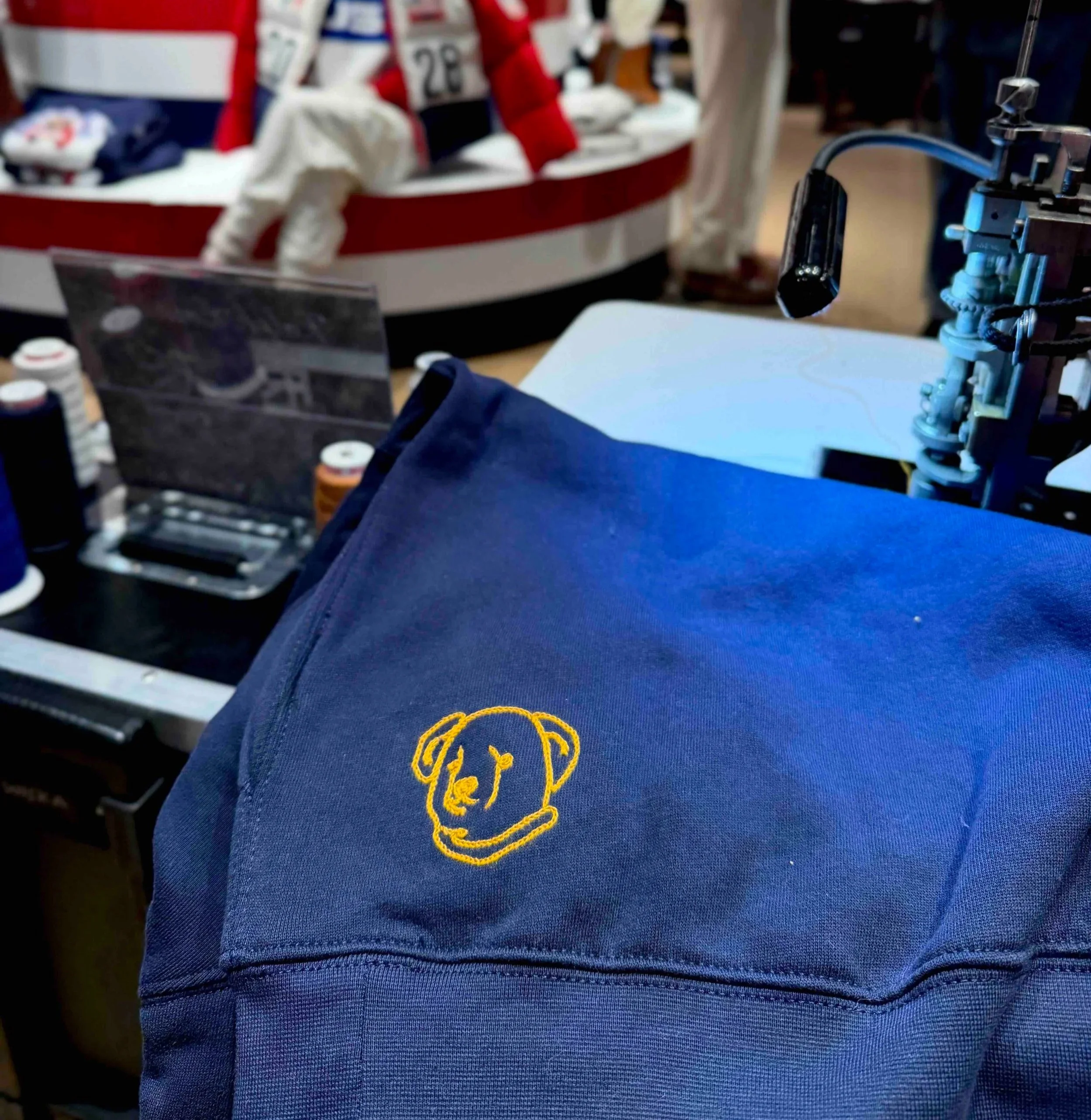 I offer in-person on-site chainstitch customization for an hourly rate or daily rate. I’ll bring my machine to your retail store, office, venue, party, trade show, influencer event, VIP section, corporate outing, or wherever else you’d like, and custom chainstitch live for you and your guests.